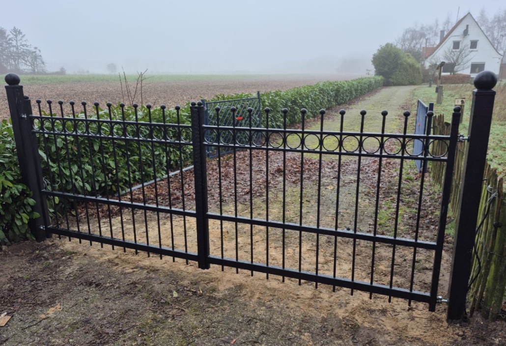 Een spijlen hekwerk wordt vaak gecombineerd met een praktische toegangspoort. Voor kleine doorgangen is een enkele draaipoort met spijlenvulling ideaal. Deze biedt een stevige afsluiting zonder veel ruimte in beslag te nemen en is makkelijk te bedienen.